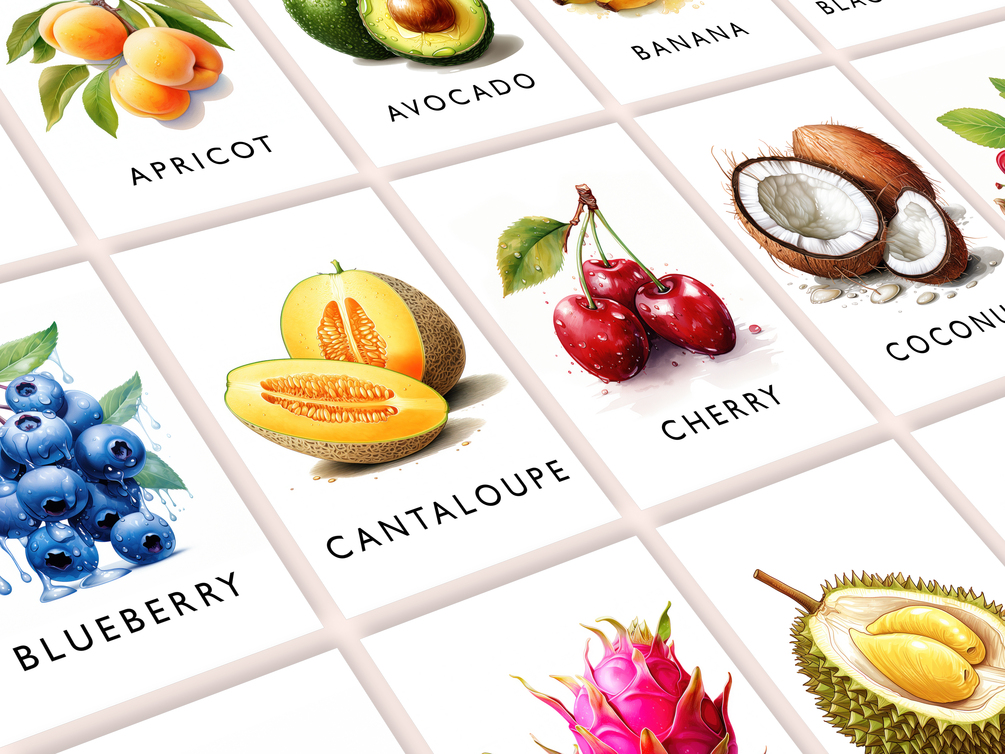 5. Enjoy using the beautifully illustrated fruit flash cards with your child!